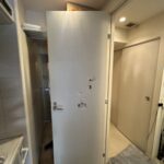 今回こちらのドア穴! ガッツリやっちゃってますね(笑) こんな大きいドア穴もアメイズにお任せください! パテで…