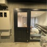 今回はこちらの店舗入り口ドア! 金具が歪んで扉が閉められないとのこと! 建て付け調整 蝶番調整! アメイズにお…